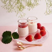 ゼラチン等を一切使用しない、とろりとくちあたりの良い生地に米粉ビスケットまたはいちごピューレを添えて、食感や風味を選べる楽しみも。